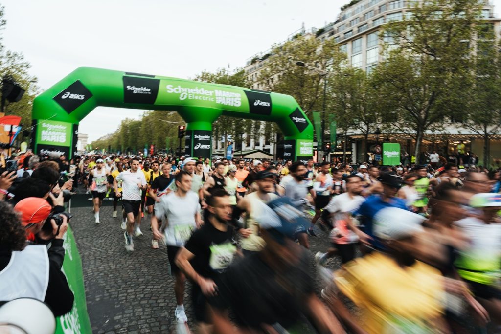 Si les premiers concurrents sont parti tôt ce dimanche 12 avril depuis les Champs-Elysées, l’ensemble du peloton composé de 60 000 coureurs dont une bonne partie vivait l’expérience du 42.195km pour la première fois, s’est élancé par vagues successives. Les derniers s’élançant sous le soleil aux alentours de 11h30.