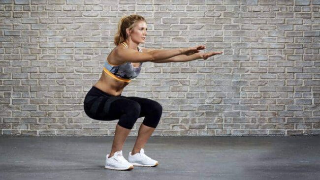 Un petit circuit sympa à réaliser trois fois (20 secondes de pause entre chaque exercice) ! Mais comme vous travaillez déjà pas mal les cuisses en courant, faites plutôt ces exos les jours où vous n’avez pas prévu de sortie. Squat sur une jambe avec banc ou chaise Quadriceps et l’équilibre Placez-vous dos à un banc, une chaise ou même votre lit ! Commencez avec les pieds à la largeur du bassin, levez un pied.Vous basculez le pied vers l’avant en même temps que vous effectuez une flexion sur la jambe d’appui pour venir presque vous asseoir sur la chaise (photo).Vous frôlez l’assise, puis vous remontez complètement debout, avant de recommencer.Temps de réalisation : 1 minute. Pour plus de challenge, descendez et remontez très lentement.Point d’attention : Basculez bien le bassin pour vous asseoir et garder le dos droit. Fente croisée avec lever d’haltères (1 ou 2 kg) Ischio, quadriceps et épaules Commencez avec les pieds largeur bassin et les deux mains…